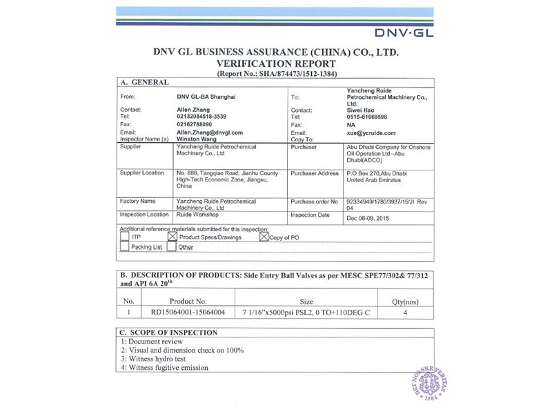 To keep stable quality, our team has long cooperation with Third Party Company, like France BV, Germany TUV and Norway DNV. The third party inspection can be carried out according to the customer's requirements, and 3.2 certificates can be provided. Customers' satisfactory is our great aim.