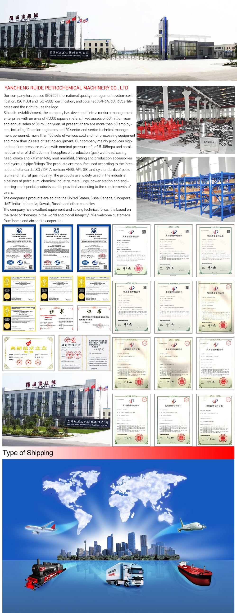 This cross is made of excellent low carbon alloy steel after overheating treatment, and is applicable to high-pressure oil and gas wells with wellhead pressure not exceeding 35Mpa; Before delivery, the inspection shall be carried out according to SY/T5053.1-2000 Blowout Preventers, Control Devices and Blowout Preventers to ensure the safety of users within the scope of work. It is applicable to high-pressure oil and gas wells in the drilling process. The side opening of the four-way joint is connected with the corresponding valve and pipeline for blowout and throttling operations. It also serves as a connection between the blowout preventer and the wellhead. Installation and use are connected with BOP stack and casing head. Clean the steel ring groove and other parts before installation. When tightening the connecting bolts between the spool and BOP, the force shall be uniform.